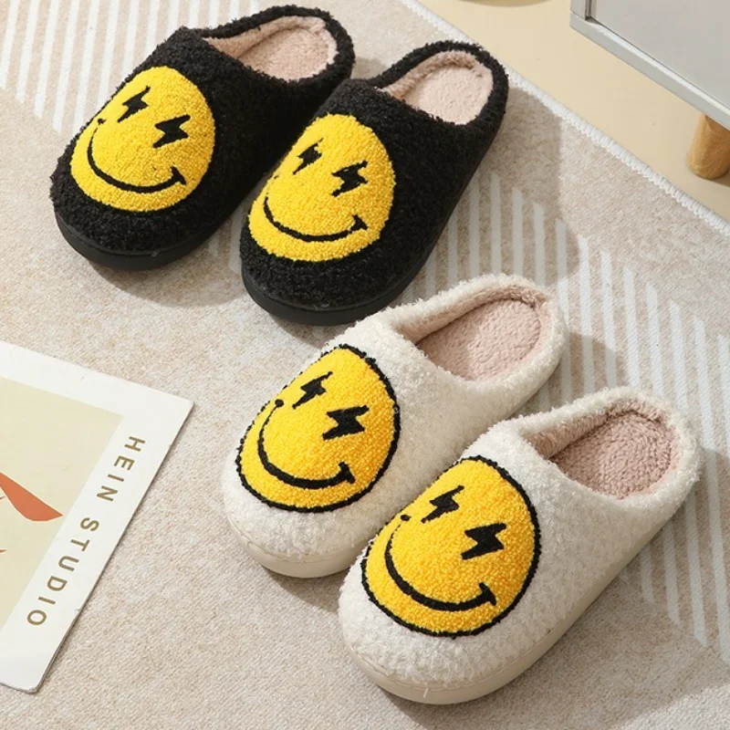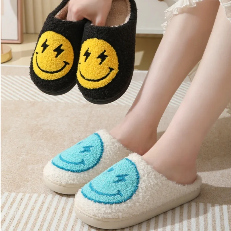 Step into comfort with these cute Cartoon Smile Winter Plush Slippers.