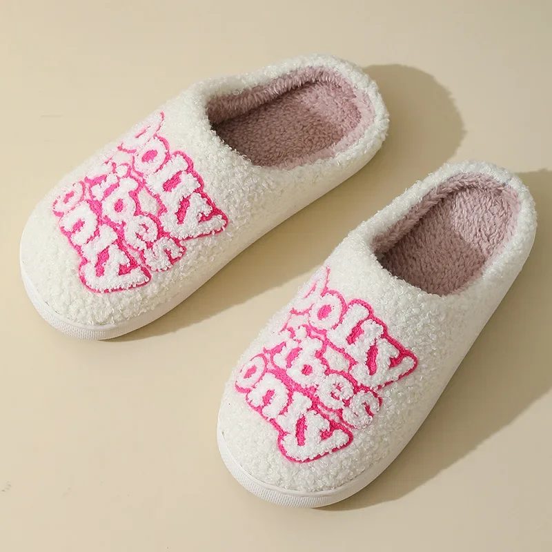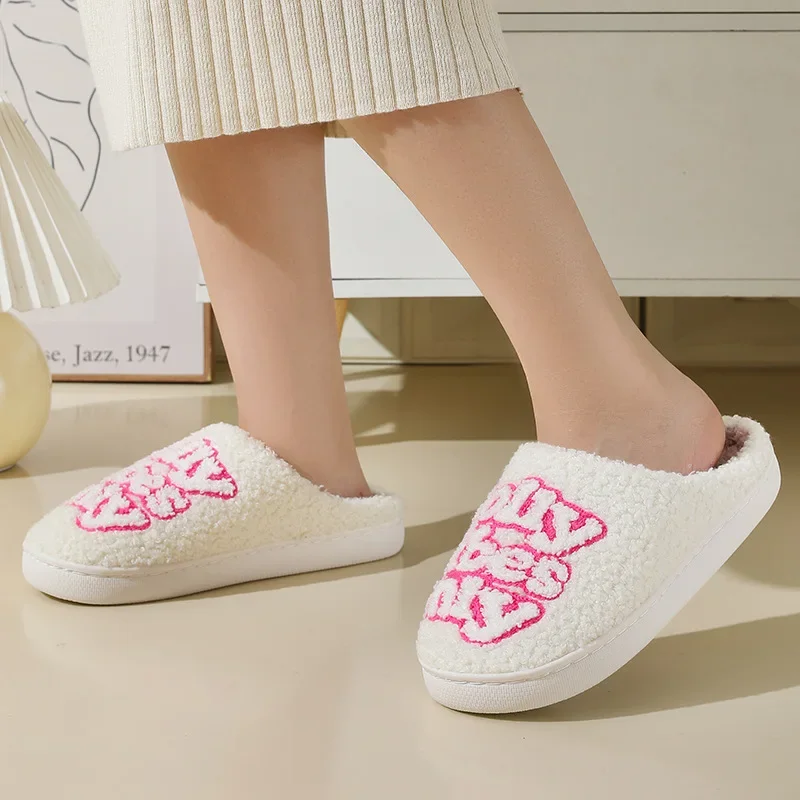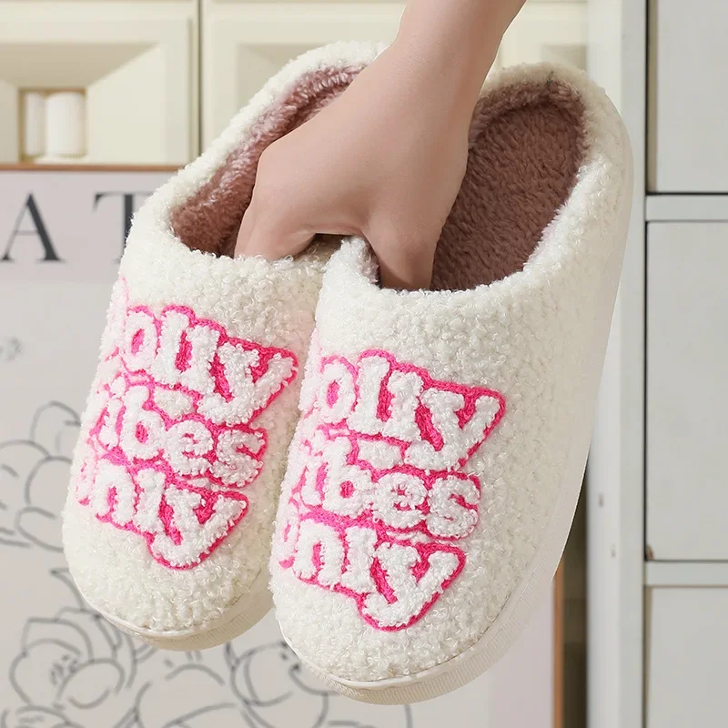 Cozy and stylish, these Winter Letter Embroidered Slippers feature a warm cotton lining, secure toe-wrap design, and non-slip sole perfect for couples seeking comfortable and fashionable indoor house slides for the 2024 winter season. Suitable for both men and women.